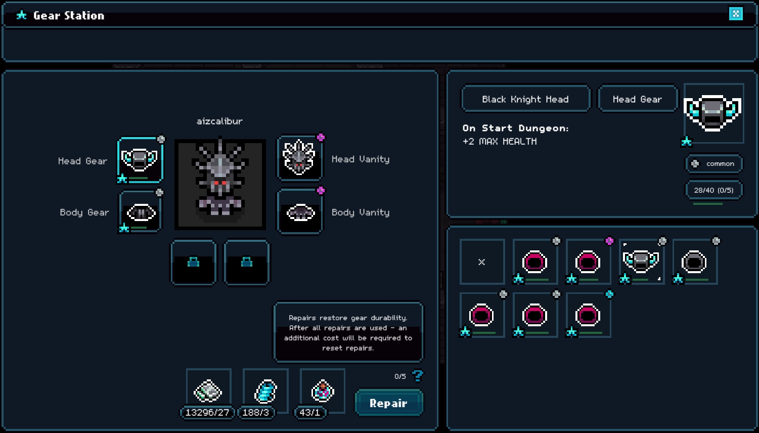 Repair Gear: Players can restore gear durability. After all repairs are used, an additional cost will be required to reset repairs.